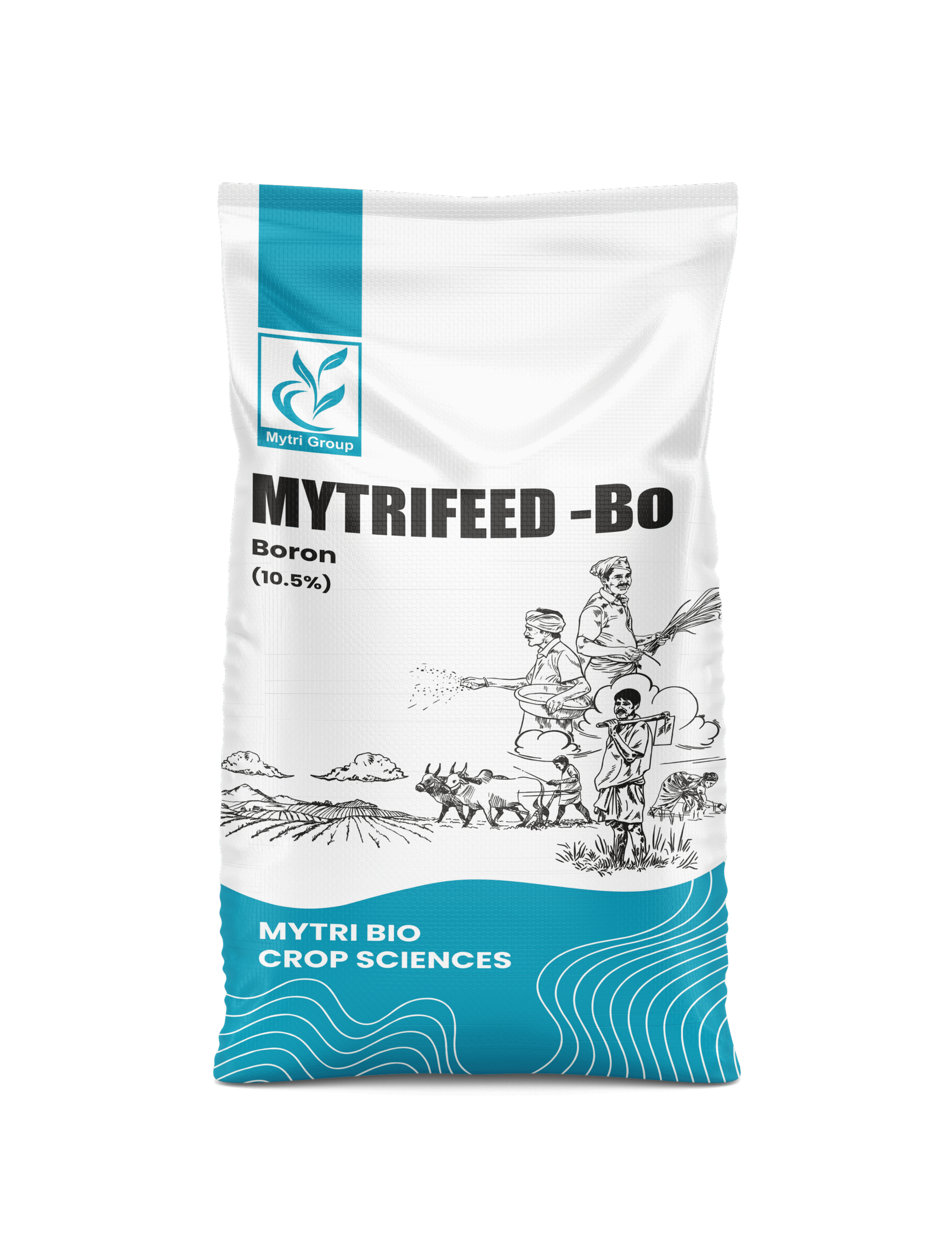 MYTRIFEED – Bo is a premium micronutrient fertilizer containing 10.5% Boron, essential for healthy crop growth, flowering, fruit setting, and overall crop quality. It prevents premature dropping of leaves, flowers, and fruits, strengthens plant immunity, and improves fruit size, taste, and quality.