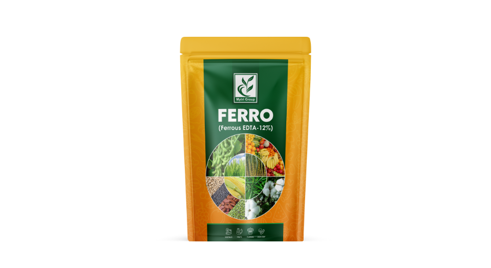 Mytri Ferro EDTA 12% is a 100% water-soluble micronutrient fertilizer providing iron (Fe) in fully chelated form, essential for chlorophyll synthesis, photosynthesis, and overall plant metabolism.