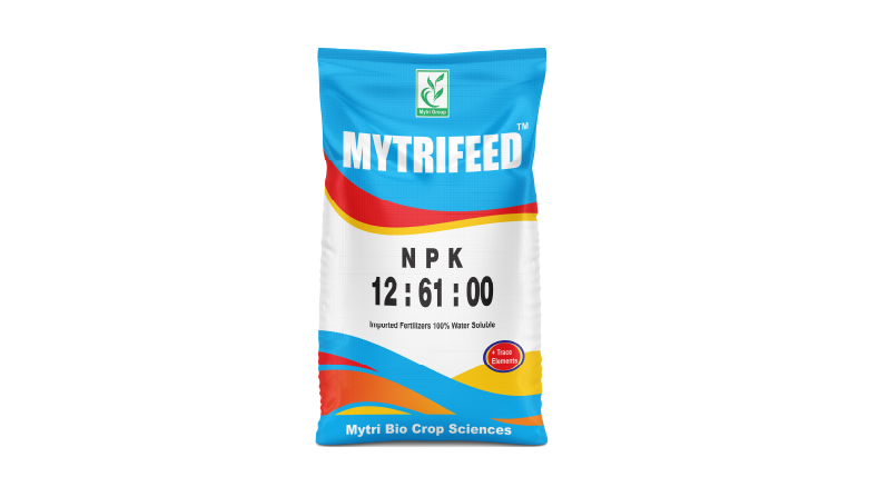 Mytrifeed 12:61:00 is a 100% water-soluble fertilizer.It contains (N:P:K) 12:61:00, which helps in better plant development and improves flowering & fruit setting.It is mainly used through foliar spray and drip irrigation for good crop growth and higher yield.