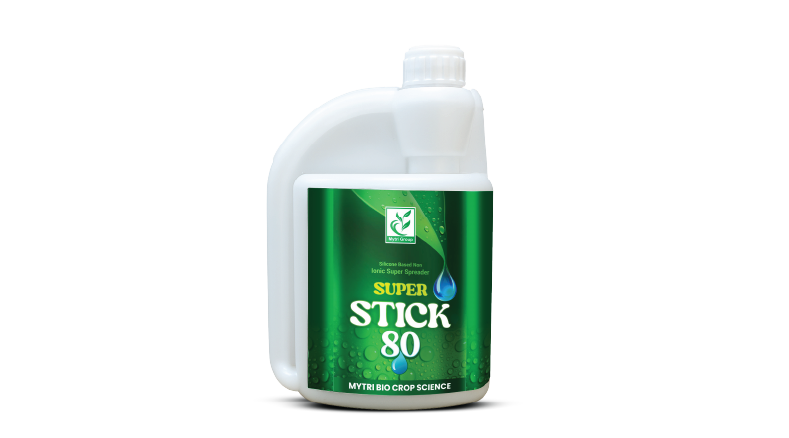 Stick-80 is a type of spreader and sticker. It works effectively as a spreader and sticker with all types of insecticides, fungicides, herbicides, and fertilizers. Stick-80 reduces wastage of spraying solutions by 30%. After spraying, this solution does not get washed away easily by rain or water. After using Stick-80 along with pesticides, the solution forms a thin layer on the leaves of the plants, ensuring that the pesticide remains on the leaf surface for a longer duration and increases its effectiveness. Therefore, it provides complete protection to the crop.