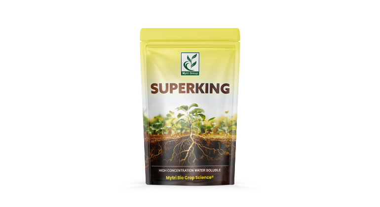 सुपरकिंग हे एक अद्वितीय शायनी फ्लेक्सचे संयोजन आहे. यामध्ये नैसर्गिक घटक आहेत जे पिकांची रोग प्रतिकारशक्ती वाढवतात आणि वाढीची क्षमता सुधारतात. या उत्पादनाचा फवारणीने पिकांचे मुळांचे विकास मोठ्या प्रमाणात वाढतो.ऊस, कापूस, भाजीपाला, गहू, मका आणि भात यांसारख्या पिकांवर सुपरकिंग फवारल्यास उत्कृष्ट परिणाम दिसून येतात.सुपर किंग हे पिकांची वाढ व उत्पादनक्षमता वाढवण्यासाठी खास तयार केलेले उच्च प्रतीचे पाण्यात विरघळणारे पोषक द्रव्य आहे .हे आवश्यक सूक्ष्म व स्थूल अन्नद्रव्ये पुरवते, ज्यामुळे मुळांची वाढ, फुलोरा आणि फळधारणा सुधारते.संतुलित पोषणामुळे पिके प्रतिकूल परिस्थितीला अधिक चांगल्या प्रकारे तोंड देतात आणि उत्कृष्ट गुणवत्तेचे अधिक उत्पादन मिळते.
